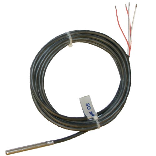 Pt100 temperaturføler for væske. Hylse i rustfritt syrefast stål Ø = 6mm, l = 60mm. Temperaturområde -40 til +180 °C. Leveres med fast 4-leder silikonkabel med lengde 10m.