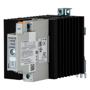 RGC1A60CM62GEN Solid state relè. Solid State kontaktor i NRG-systemutførsel med integrert kjøleribbe, 1-fas styring, primærspenning 42-660VAC, styresignal 4-32VDC eller BUS, maks last 62A, kobling i nullgjennomgang. NB! Fjærklemme plugger for styresignal må bestilles separat type RG3G25