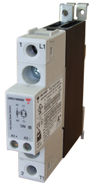 Solid State kontaktor med integrert kjøleribbe, 1-fas styring, primærspenning 42-660VAC, styresignal 5-32VDC, maks last 30 A, kobling i nullgjennomgang.