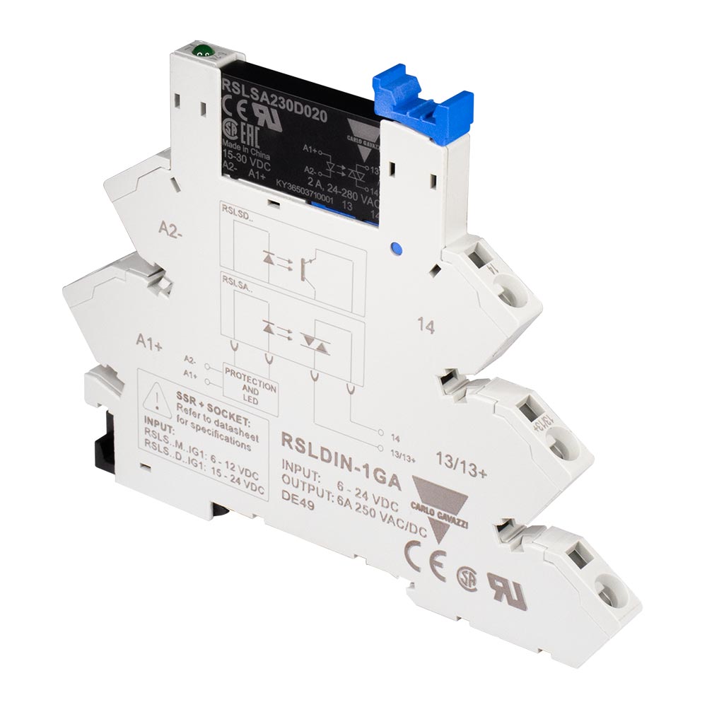Solid state releer for styring av mindre laster som små varmeelementer, kontaktorer eller magnetventil o.l. Her kan man velge mellom bare rele, sokkel eller komplett rele med sokkel ferdig påmontert. Utførelsene er både for DC- og AC-last med kobling i nullgjennomgangen (ZS) eller momentan innkobling (IO). Selges i forpakninger av 10 stk.