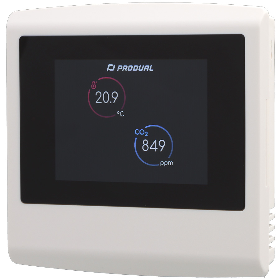 Temperatur og CO2 transmitter for rom. hvit utførelse. Mulighet for Bluethooth kommunikasjon mot MyProdual/MyTool app for programmering.
