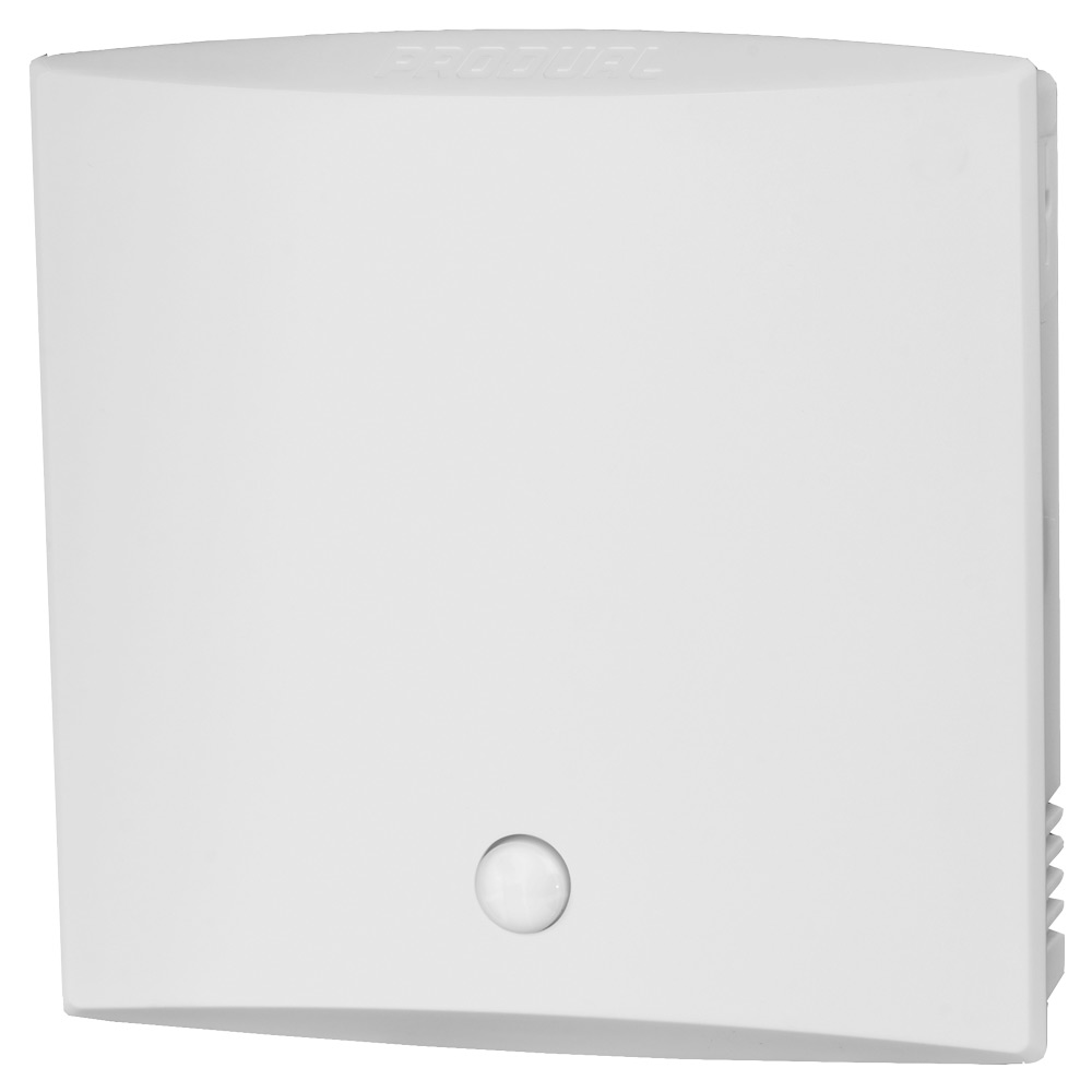 Temperatur og CO2 transmitter for rom. Hvit utførelse med PIR deteksjon. Mulighet for Bluethooth kommunikasjon mot MyProdual/MyTool app for programmering.