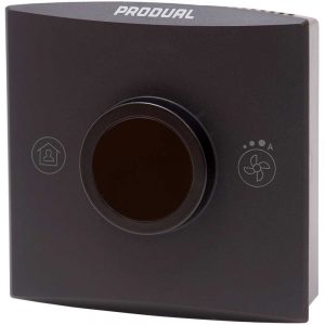 RUB2FM-RH Romkontroller. Romføler for Modbus kommunikasjon med tilstedeværelseknapp, vifteknapp og ratt for justering av settpunkt. Sort utførelse. Måleområde 0…50 °C og 0…100 Rh%. Inngår i Produals Proxima-serie av romenheter og romkontrollere som finnes i både trådbundne og trådløse utførelser. Enhetene er basert på Produals PUMP-konsept (Produal Unified and Modular Plattform). Dette er et Plug-n-Play konsept med enkel trådløs oppdatering og konfigurering av produktene.