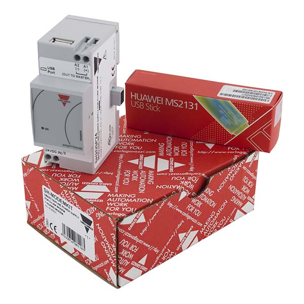 SH-MODEMKIT er et kit bestående av SH2DSP24 og HUAWEIMS2131 USB dongle GSM modem. Tilkoblingsmodulen monteres direkte på controller. Modemet brukes bl.a. til å sende SMS eller nettilkolbing av controller. Man kan få fjerntilgang til controller via dette modemet. Enheten har 24VDC forsyning, monteres på DIN-skinne og har byggebredde 2 moduler.