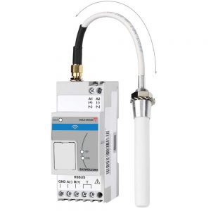 SH2WBU230N trådløs basestasjon sørger for kommunikasjon med trådløse Smart Dupline enheter, og sender signalene videre til Controller. Enheten har 230VAC forsyning, monteres på DIN-skinne og har byggebredde 2 moduler.