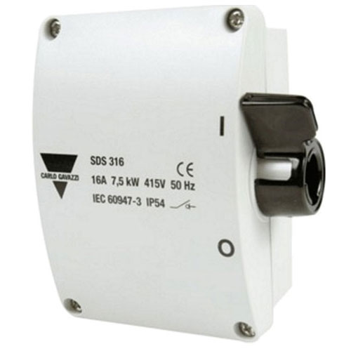 Utgått, erstatningsprodukt er SDS316AUXM25. Sikkerhetsbryter 16A. 3-polet. Uten hjelpekontakt. Grå. Isolerende og slagfast materiale. Sidebetjent og låsbart håndtak. 120x80x56 mm. IP54. Elnummer: 1405201