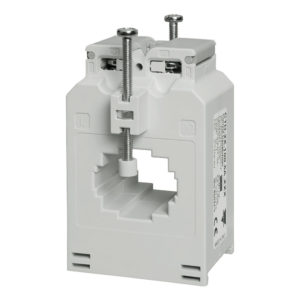 Strømtransformator 75/5A. Trappet lysåpning. Dobbelt sett tilkoblingsterminaler. Integrert DIN-skinne feste. Elnummer: 8200447