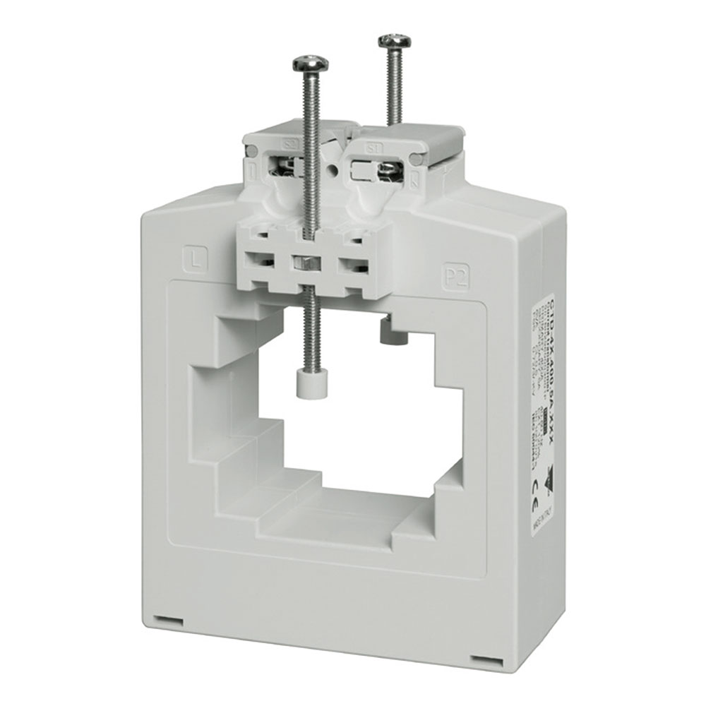 Standard strømtransformator med omsetningsforhold 250/5A . Trappet lysåpning for kabel maks. ø=51mm eller strømskinner 60x20mm, 50x40mm osv. Dobbelt sett tilkoblingsterminaler.