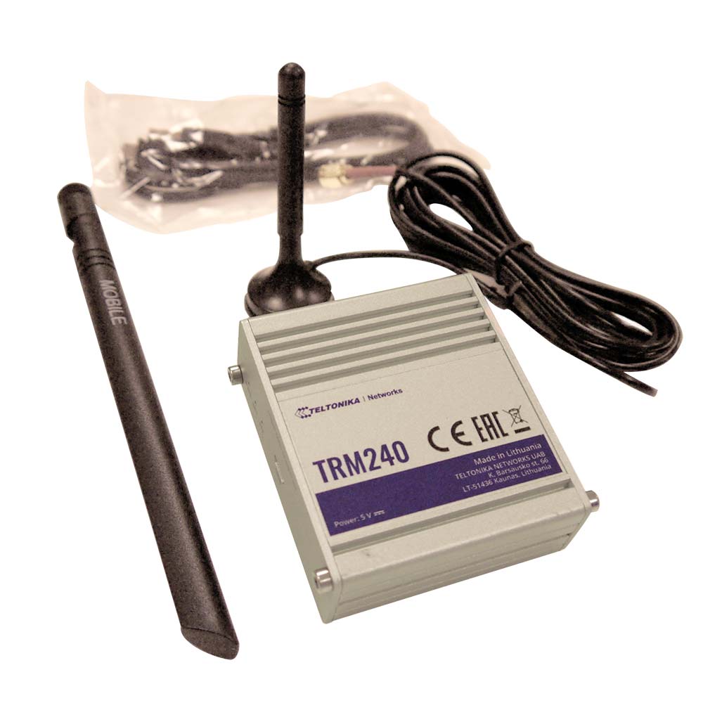 - 4G modem. Med 4G modem slipper man å ha noe med det lokale nettverket å gjøre, og man bruker M2M SIM kort med ca 1 Gb datatrafikk. Husk å bestille static IP for SIM kortet. Da er det denne static IP-adressen som blir tilkoblingen til UWP30 controller. Dette settes opp direkte i controller ved bruk av konfigurasjonssoftware. Forslag til modem er UWP-MODEM-KIT-4G-EU-E02 og kjøpes fra Carlo Gavazzi AS.