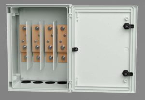 Veggskap i fiberarmert polyester. 400x400x200. Monteringsplate bestilles separat. IP66. Slette sider. Slagfasthet IK10. Meget motstandsdyktig mot kjemikalier.