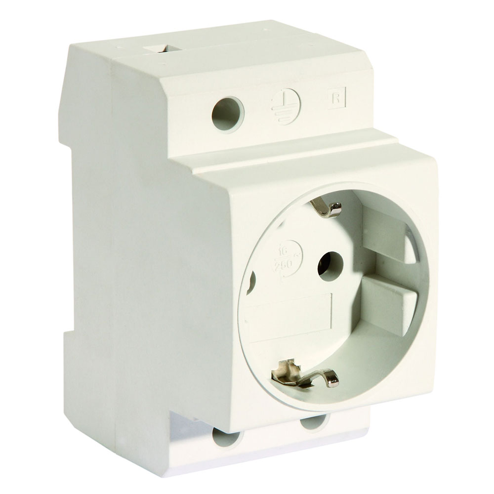 Modulær stikkontakt for DIN-skinne. 16A/250VAC. Fabrikat: Pollman