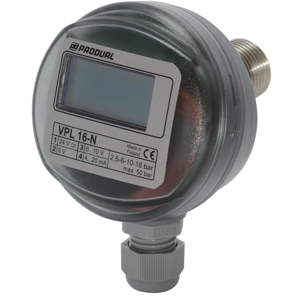 Trykktransmitter for vann. Måleområde 0-16, 0-25, 0-40 eller 0-60 Bar. R 1/2″ kobling. Beskyttelsesgrad IP54. Med display. Vanntrykktransmitter til varme- og kjølesystemer.