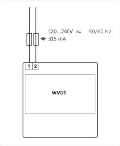 Nettanalysatoren WM1596AV53HOSX er avhengig å ha en separat forsyningsspenning. Forsyningsspenningen mellom 120-240VAC/DC tilkobles klemme 1 og 2.