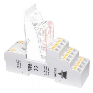 Sokkel for RMIA hjelperelè. Med push-in klemmer. 14-pins.